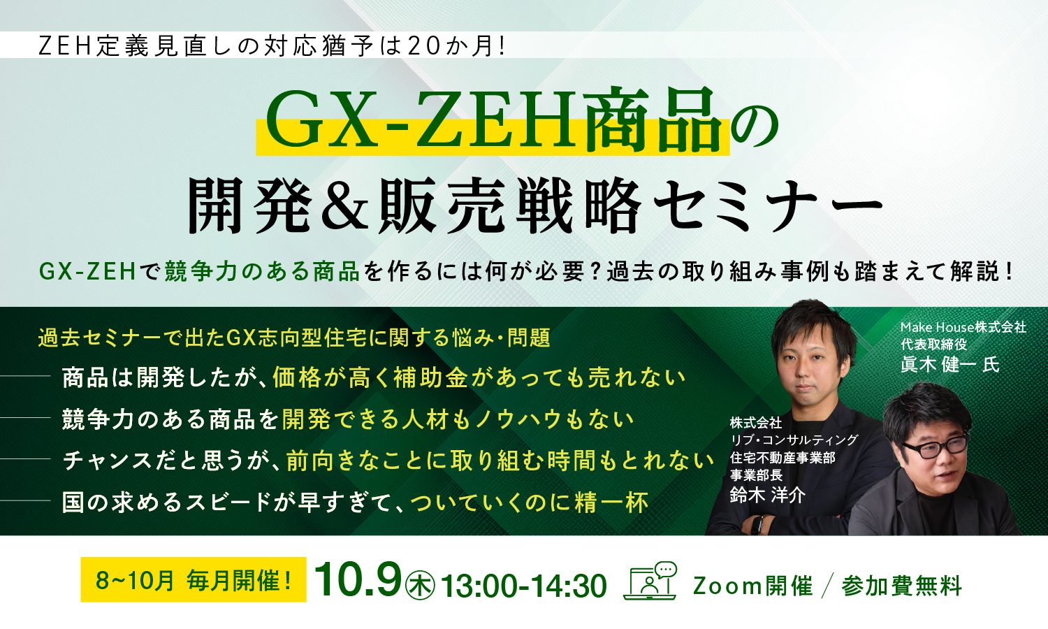 そこで、本セミナーでは「新ZEH定義」となる「GX志向型住宅」について、2027年4月までの残り20カ月の間で、各工務店・ビルダーの現状を踏まえて取るべき対応を解説します。