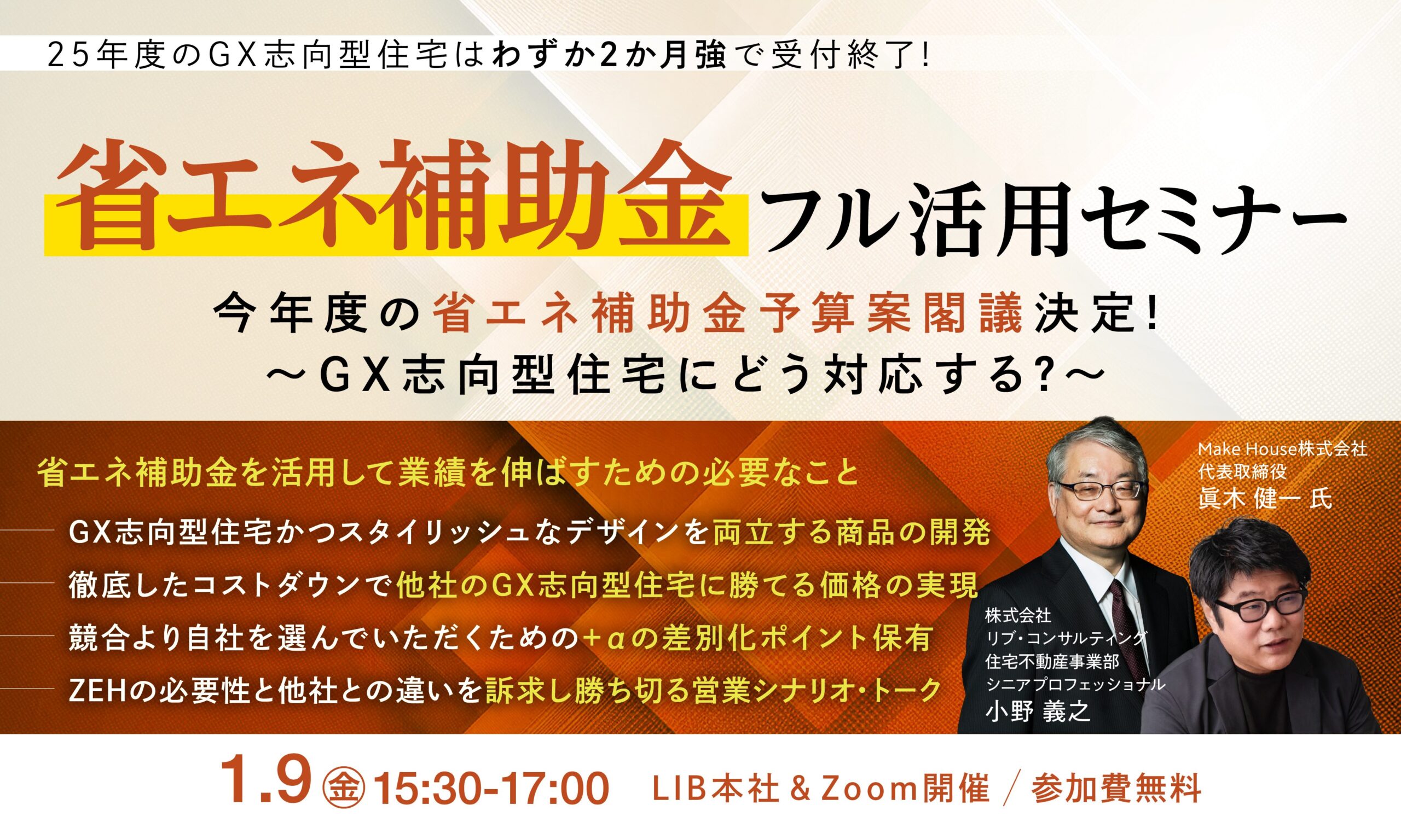 【Make House×リブ・コンサルティング】省エネ補助金フル活用セミナー〜2026年度予算案閣議決定!GX志向型住宅にどう対応する?〜