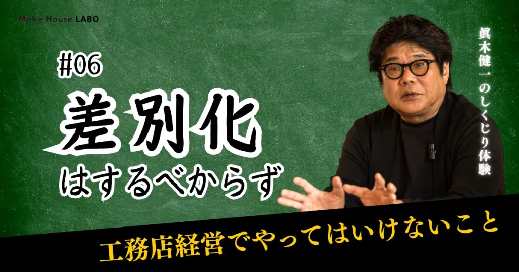 「他社との差別化はどうすればいいですか?」 コンサルティングをしていると、必ずと言っていいほどこの質問を受けます。 世のマーケティング本には「ブルーオーシャン(競合のいない海)を目指せ」と書いてあるからです。 しかし、地域密着の工務店経営に... 眞木健一が語る